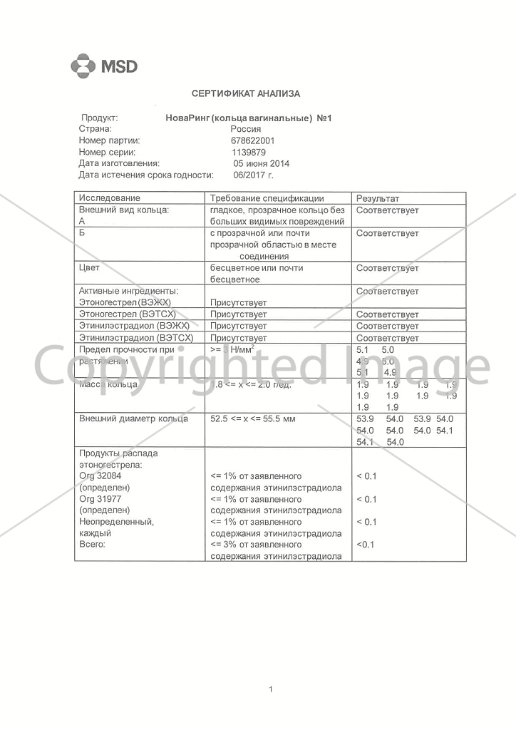 Цены на Новаринг кольцо вагинальное, 1 шт. в Украине