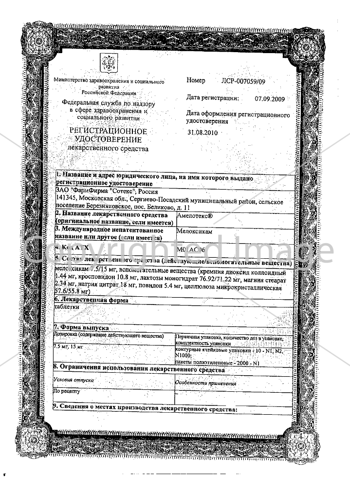 Похожее видеоДополнительная информацияАмелотекс таблетки 15 мг, 10 шт. производит Сотекс, страна производства Россия. Если Вы заинтересовались эти товаром, обязательно посмотрите его аналоги: Мовалис ампулы 1,5 мл/15 мг, 3 шт., Мелоксикам таблетки 7,5 мг 20 шт., Артрозан р-р для в/мыш. введ. 6 мг/мл 2,5 мл ампулы 10 шт., Артрозан р-р для в/мыш. введ. 6 мг/мл 2,5 мл ампулы 3 шт., Мелофлекс Ромфарм р-р для в/мыш. введ. 10 мг/мл 1,5 мл ампулы 5 шт., Мелофлекс Ромфарм р-р для в/мыш. введ. 10 мг/мл 1,5 мл ампулы 3 шт..