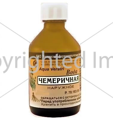 Чемеричная вода - противопаразитарное (противопедикулезное) средство. Оказывает нейротоксическое действие на половозрелые особи насекомых.