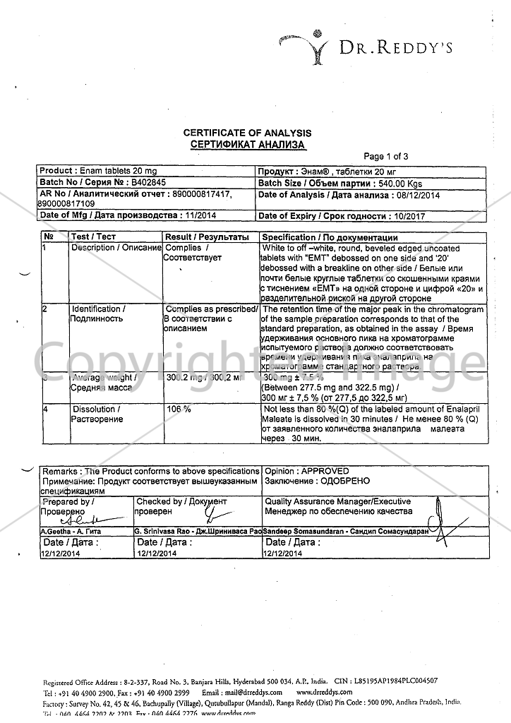 почала пити енам від серцевої недостатності, спочатку голова моторошно паморочилося, потім пройшло. ефект хороший від нього, самопочуття набагато краще тепер. спершу пила по 20 мг на добу в два прийоми, потім дозу зменшила за рекомендацією лікаря.