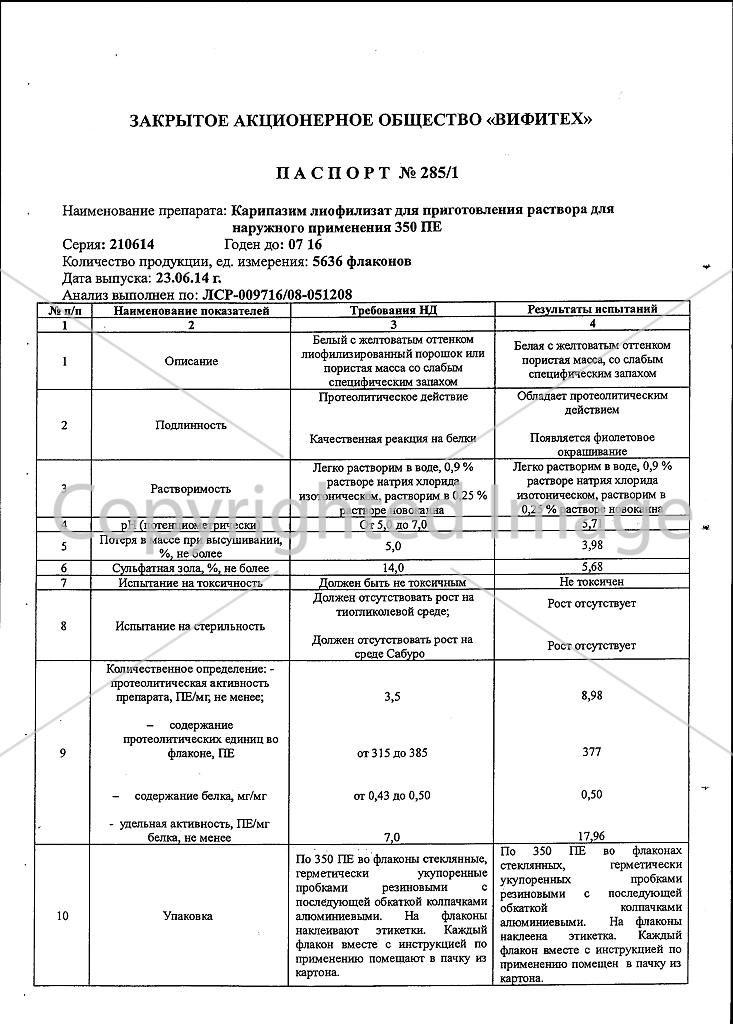 Цены на Карипазим 350пе лиофилизат д/приг. р-ра д/наружного прим. фл. х1 в Украине