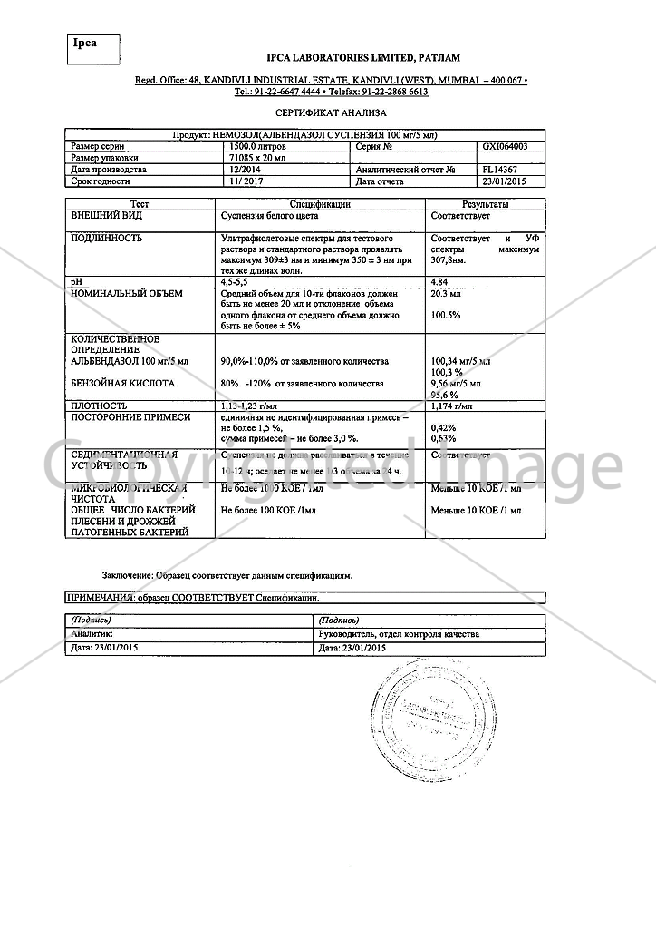 Только у нас Вы всегда сможете заказать и купить (с оплатой при получении) Немозол суспензия 100 мг/5 мл, 20 мл в любой город Украины (Киев, Винница, Кропивницкий (Кировоград), Полтава, Харьков, Днепр (Днепропетровск), Луганск, Ровно, Херсон, Донецк, Луцк, Симферополь, Хмельницкий, Житомир, Львов, Сумы, Черкассы, Запорожье, Николаев, Тернополь, Чернигов, Ивано-Франковск, Одесса, Ужгород, Черновцы и другие города). Мы отправляем нашу продукцию день-в-день или на следующий рабочий день. Будьте здоровы!