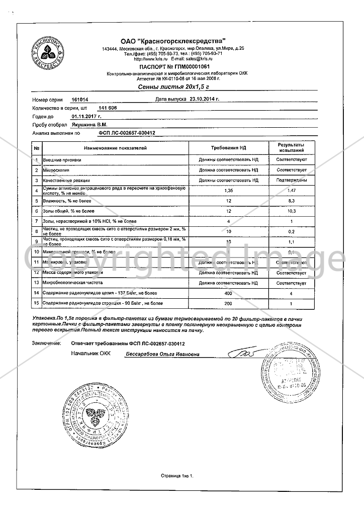 Сенны листья фильтрпакетики , 1,5 г , 20 шт. инструкция на украинскомФорма випуску