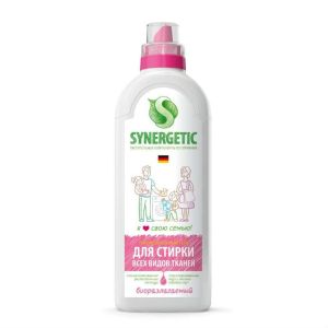 Висококонцентроване професійний засіб "Synergetic" призначено для прання будь-яких видів тканин. Підходить для дитячого, темного, кольорового і білого білизни, вовни, шовку і джинсових тканин. Засіб гіпоалергенний, тому що містить натуральні компоненти. Зберігає структуру тканин і насиченість кольору. Повністю змивається, не залишається на одязі. Підходить для всіх типів пральних машин і ручного прання при температурі 20-60 ° C.