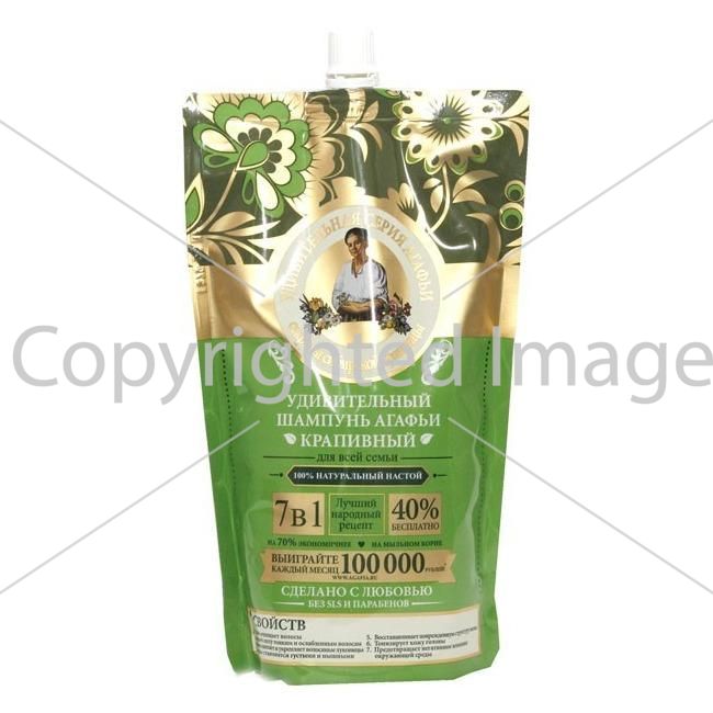 Шампунь «Дивовижна Серія Агафії» «Кропив'яний» м'яко очищає, надає силу тонким і ослабленим волоссю. Глибоко живить і зміцнює волосяні цибулини. Тонізує шкіру голови.